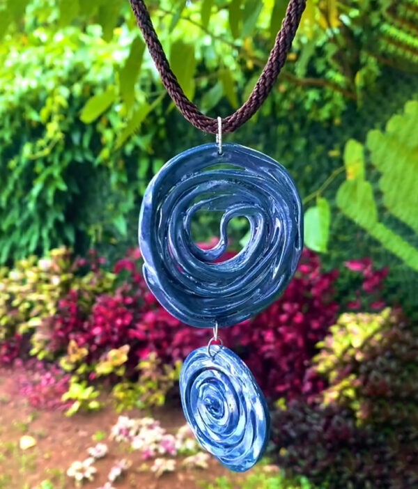 Colar esmaltado em alta temperatura, cordão ponto peruano feito de poliester encerado e metais banhados á ouro branco.